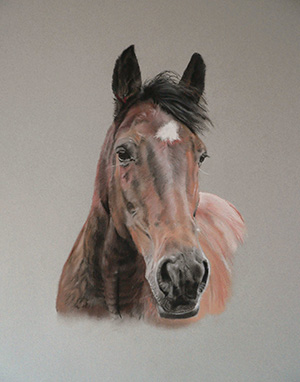 I work exclusively in pastels, which I feel to be the best medium to capture the subtleties and intricacies of the animal's facial expression, coat texture and - most important of all - the light in its eyes. The eyes are truly the window of an animal's soul, and are probably the most important single detail in a painting. If the eyes aren't right, somehow the painting doesn't quite work.